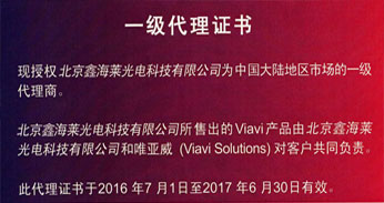 北京鑫海莱光电科技有限公司成立于2001年,位于北京市海淀区中关村高科技园区,作为VIAVI的中国区一级代理商。并为广大通信客户提供专业和高效的技术服务。经过多年的发展,公司已经建立了覆盖全国的市场营销网络。
